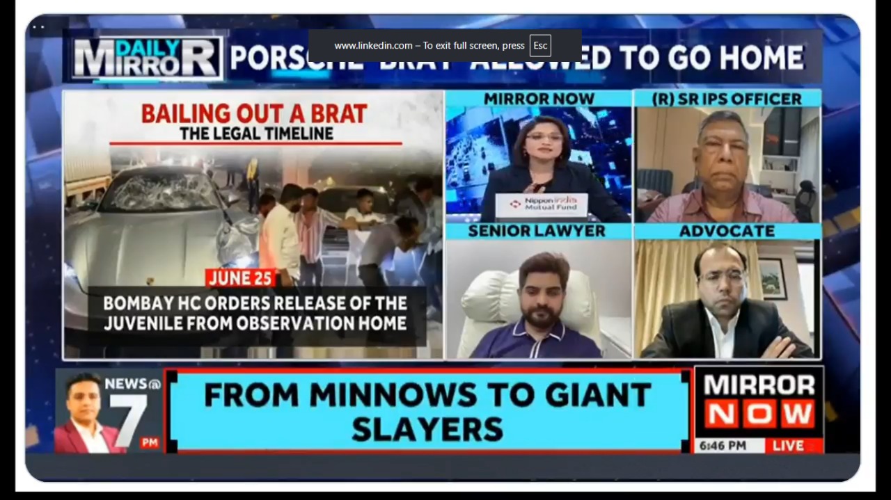 Our Managing Partner NILESH TRIBHUVANN demystifies the Bombay High Court’s Judgement in the hashtag#Porsche ‘brat’ allowed to go home matter.